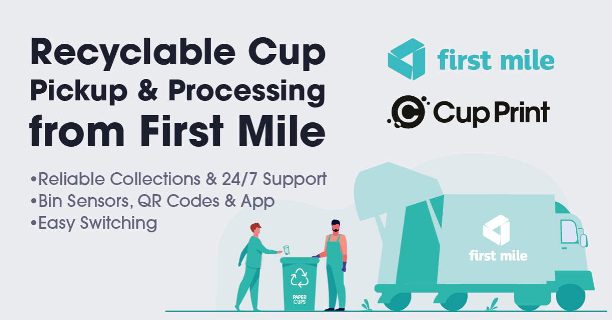 Cup Print are pleased to announce a partnership for the pick-up and recycling of Cup Print EarthCoating® Certified-as-Recyclable Paper Cups with leading Waste Processor, First
